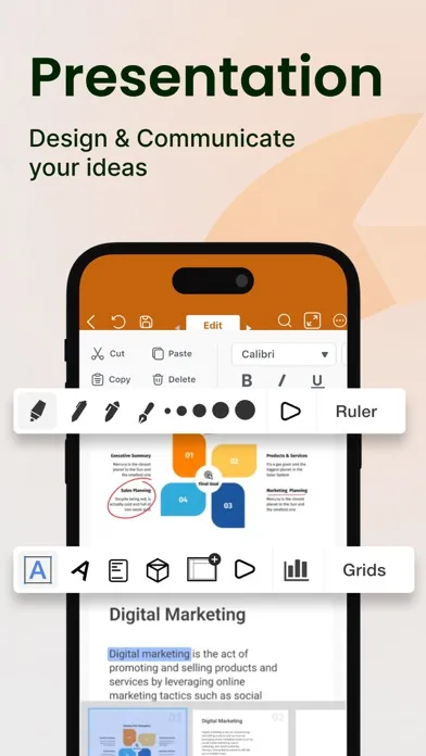 Word Editor supports PPT files, allowing you to create, edit, and customize presentations with ease. Add slides, arrange layouts, and make on-the-spot adjustments, all from the convenience of your mobile device.