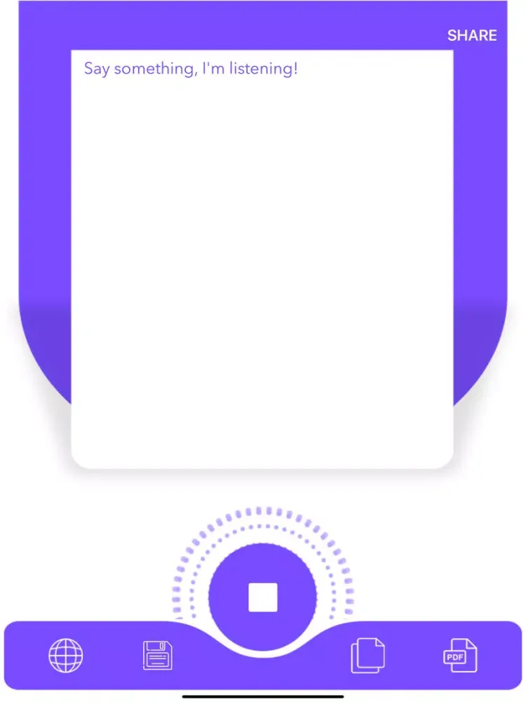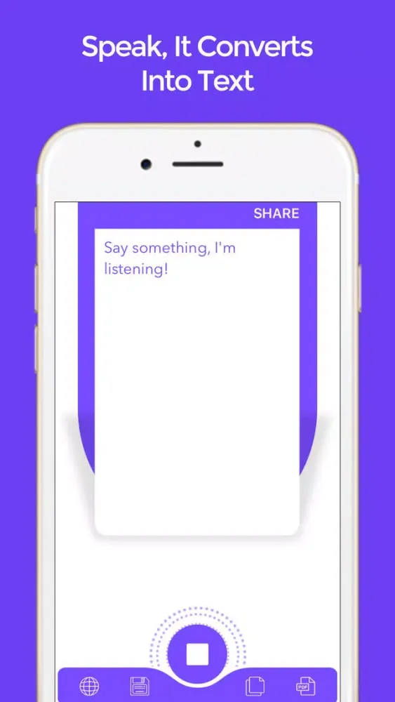 'Speech to Text - iVoice to Text' enables you to converts your spoken words to text and copy/share to any other App for your use etc.