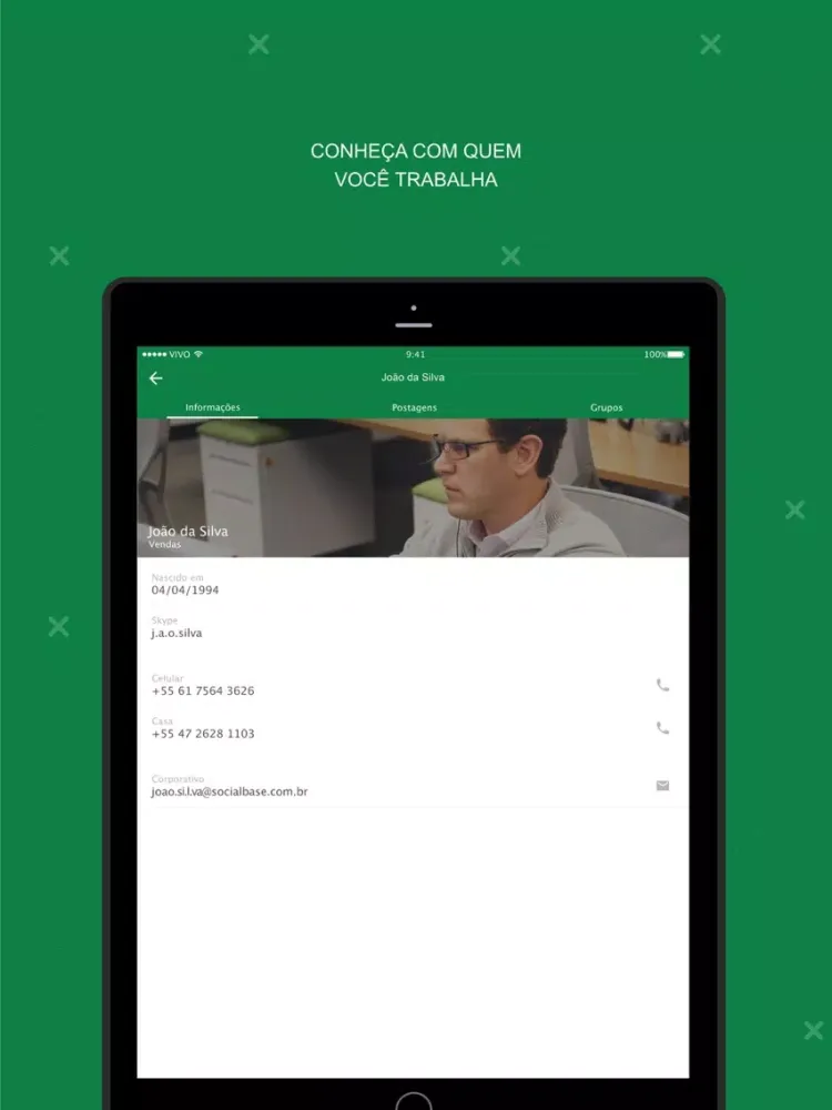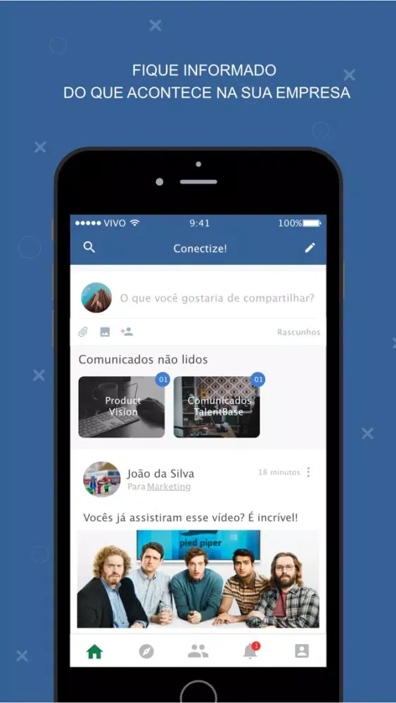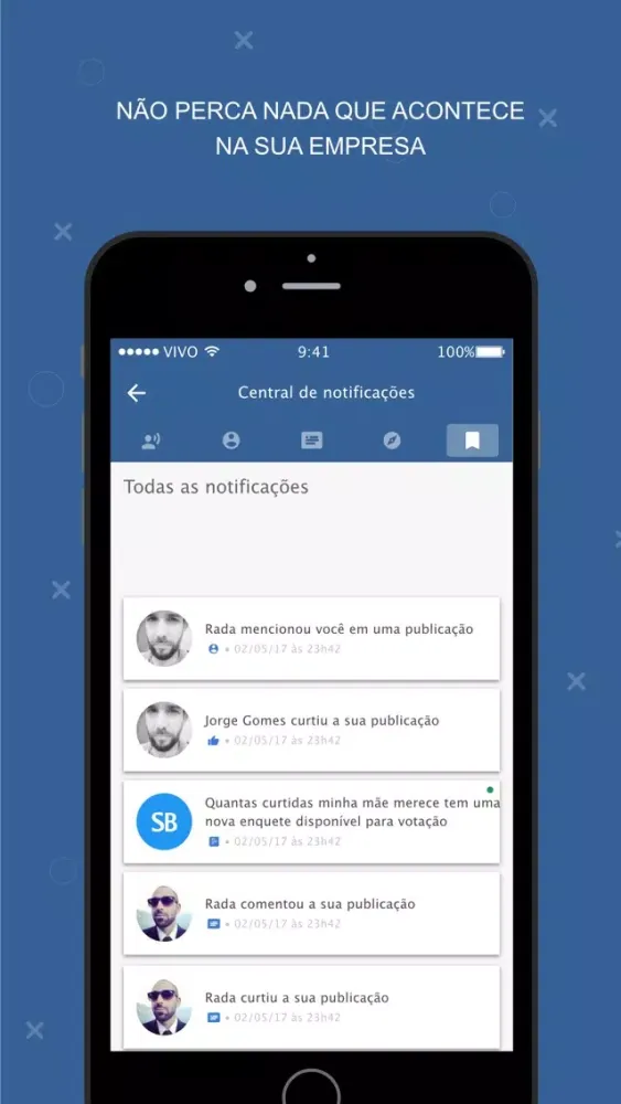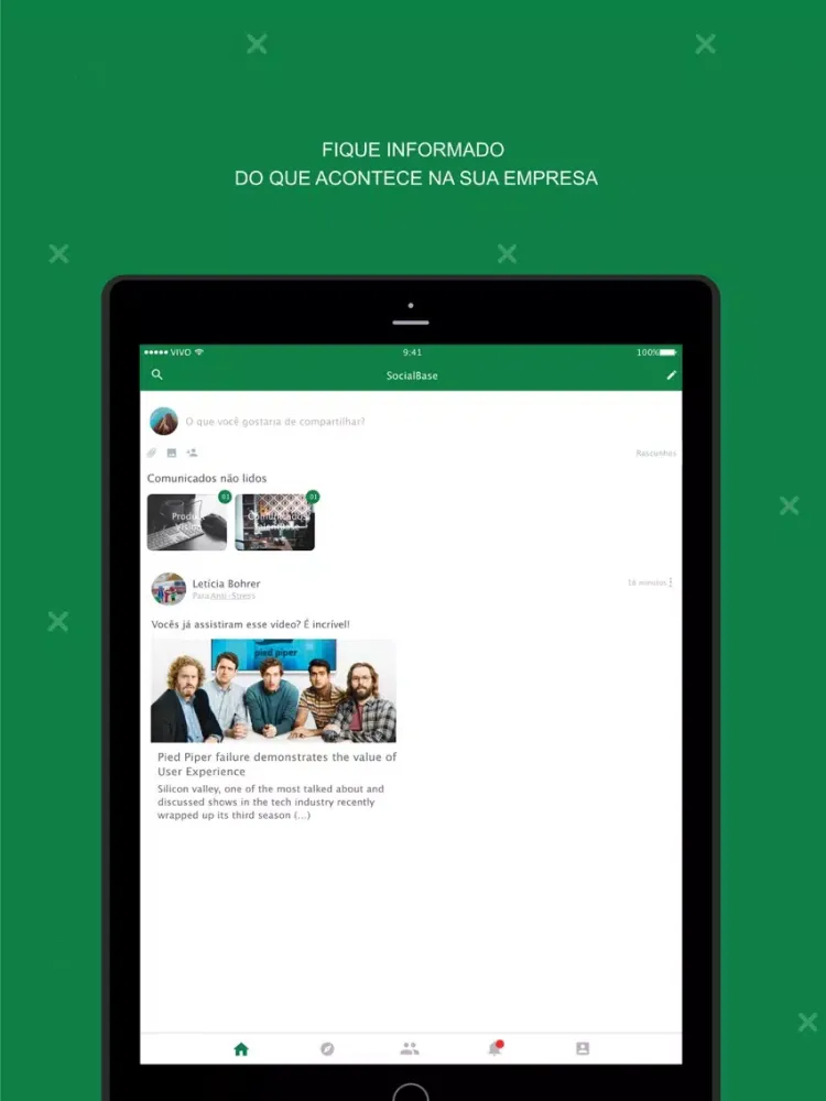Com o aplicativo móvel é possível ficar por dentro de tudo o que está acontecendo na empresa mesmo não estando presente. Receba e compartilhe conteúdos com seus colegas de forma segura e simples a qualquer momento e em qualquer lugar. Facilite seu trabalho!