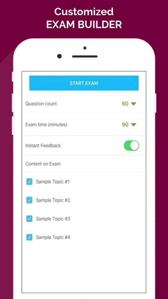 Get the FREE app now to start your preparation immediately with hundred of FREE Practice Questions and Flash Cards. In addition, five free EXAM BUILDER give you the REAL exam environment by allowing you to configure exam time, the number of questions and customized content.