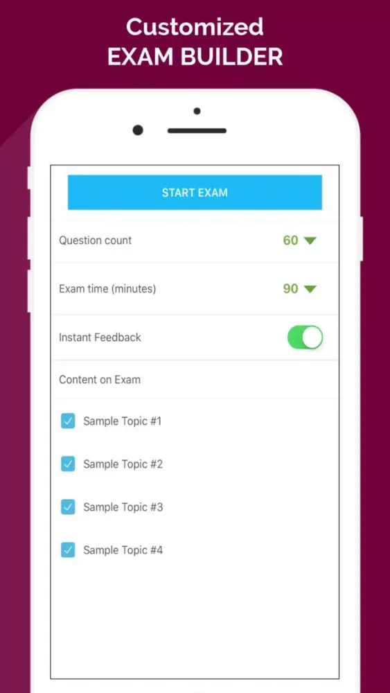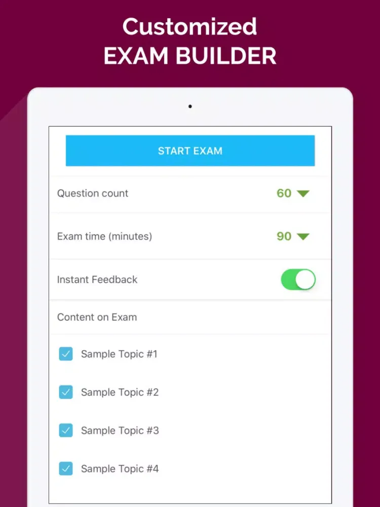 Get the FREE app now to start your preparation immediately with hundred of FREE Practice Questions and Flash Cards. In addition, five free EXAM BUILDER give you the REAL exam environment by allowing you to configure exam time, the number of questions and customized content.