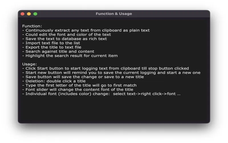 This clipboard application will continuously get plain text from any data sources. It is very suitable for doing research on a topic or copy/paste data from multiple sources and languages.