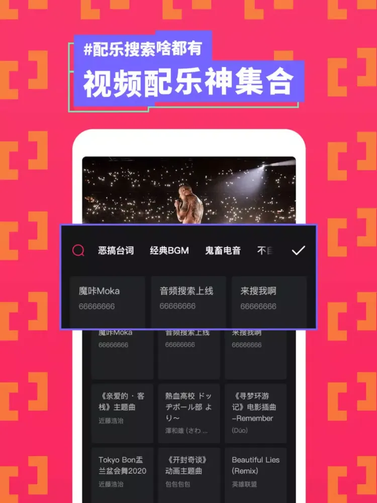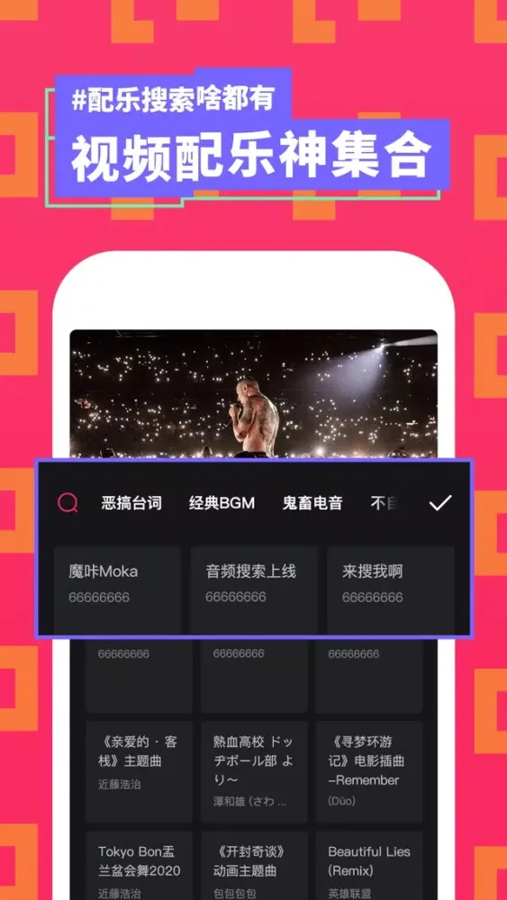 5、【音乐搜索】新增音乐搜索功能,想给视频配什么音乐,就配什么音乐!