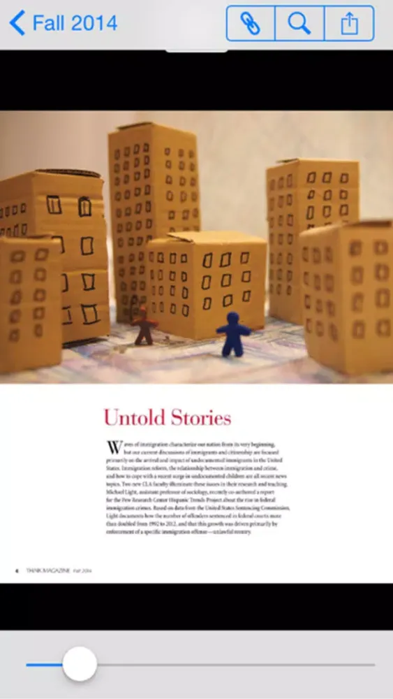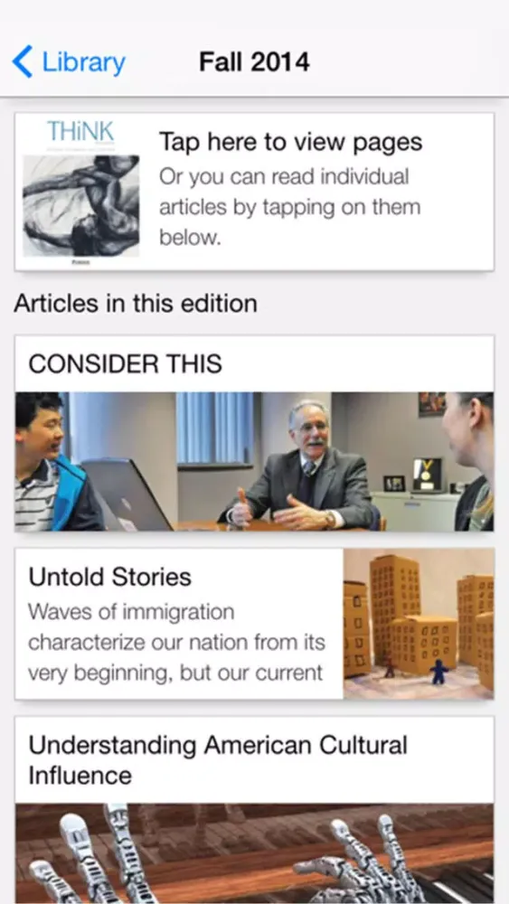 Stay in touch with the College of Liberal Arts with the CLA e-Reader app. The app includes THiNK Magazine, featuring stories that explore contemporary issues through the work of CLA faculty, students, and alumni, along with the latest CLA news.