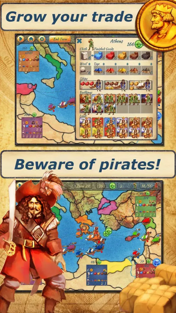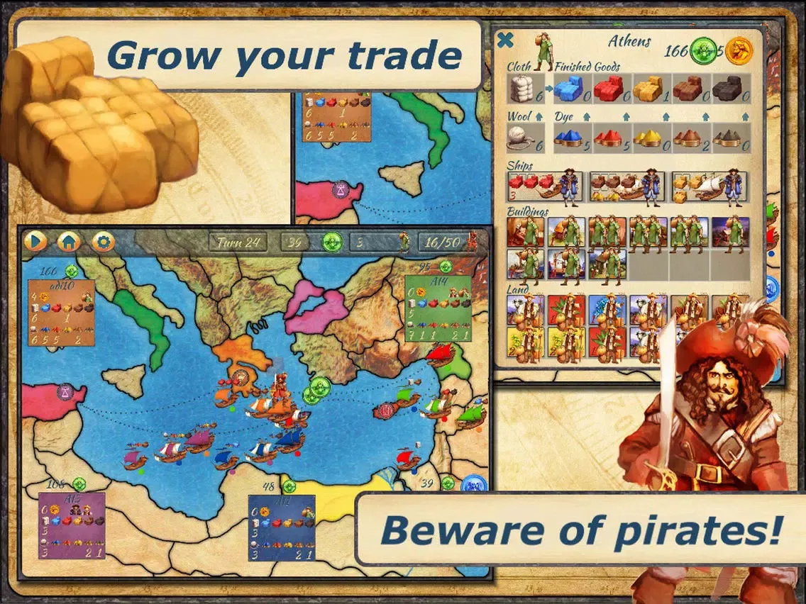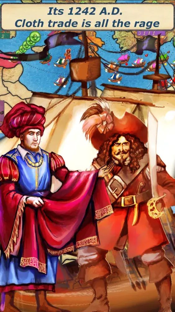 Its 1242AD and Cloth trade is all the rage around the Mediterranean. You are playing a novice draper (cloth merchant), just beginning his business in the dangerous waters of medieval trade world. There are others who begin their journey as well, all vying to become the world's most renowned draper, willing to do whatever it takes to get to the top.