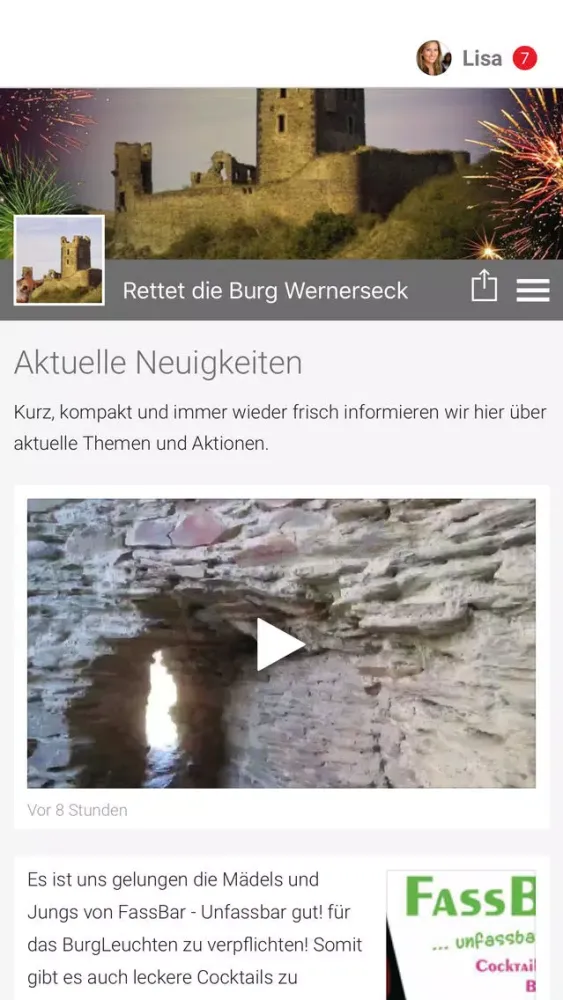 Diese App bietet einen Streifzug durch die 615-jährigen Geschichte der Burg Wernerseck und spiegelt den aktuellen Stand der Sanierungsarbeiten wieder. Dient dazu, einen Einblick in die Arbeit des Fördervereins zu bekommen, der sich voll und ganz dem Erhalt der spätmittelalterlichen Burg verschrieben hat.