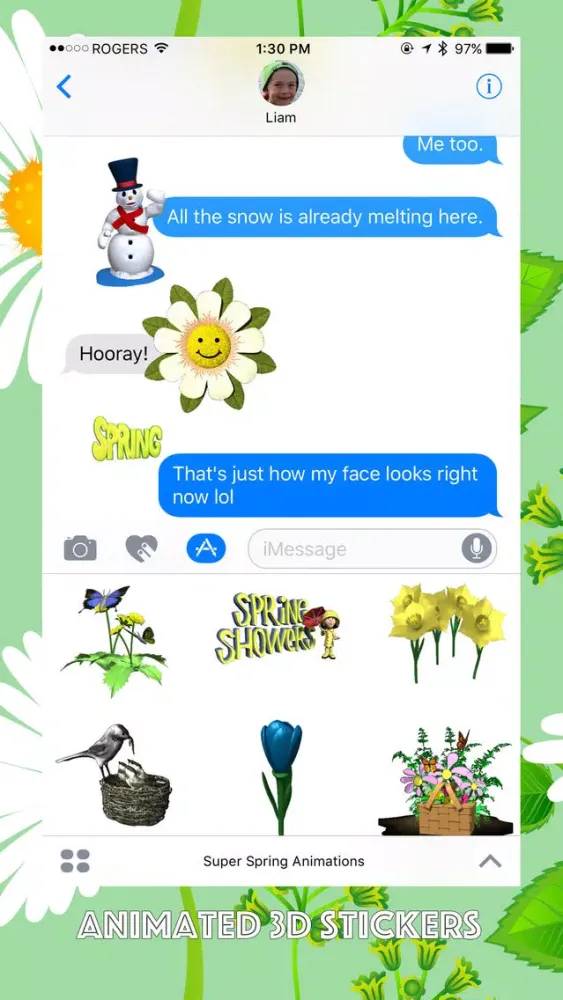 Celebrate Spring by using these cheerful animated 3D images in your conversations! Send them in a message of their own or peel them out of the drawer and attach them to a message or image.