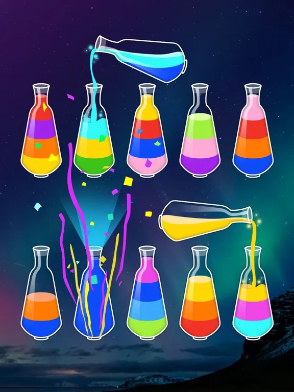 -Enhance your sorting skills with useful power-ups like Undo, Restart, and extra bottles to pour water into.