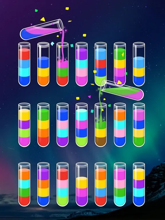 Dive into the addictive gameplay of Water Sort and challenge to solve thousands of mind-bending levels. Immerse yourself in the soothing sound of water as you pour and sort colors, creating a beautiful symphony of hues. Let the colors flow and your brain ignite with excitement!