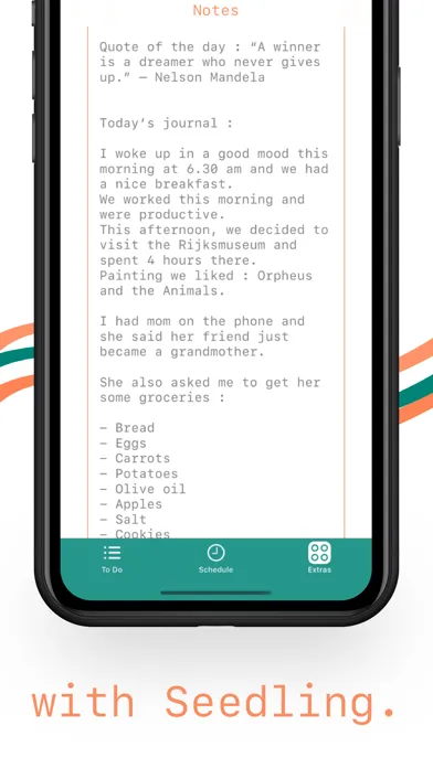 Seedling focuses on what's important and allows you to organize your day in a simple way.