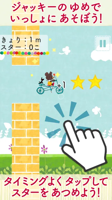 ◎ジャッキーは、夢のなかで空飛ぶ自転車に乗り、『スター』を集めます。