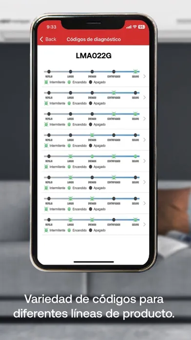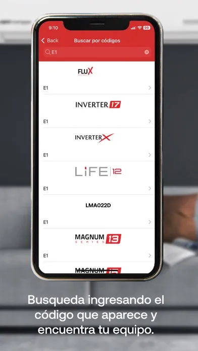 - Simplemente identifique su modelo dentro del listado de la gran gama de equipos mirage y el código que aparece, la aplicación lo guiará para mostrar el significado del mismo y la manera de resolverlo.