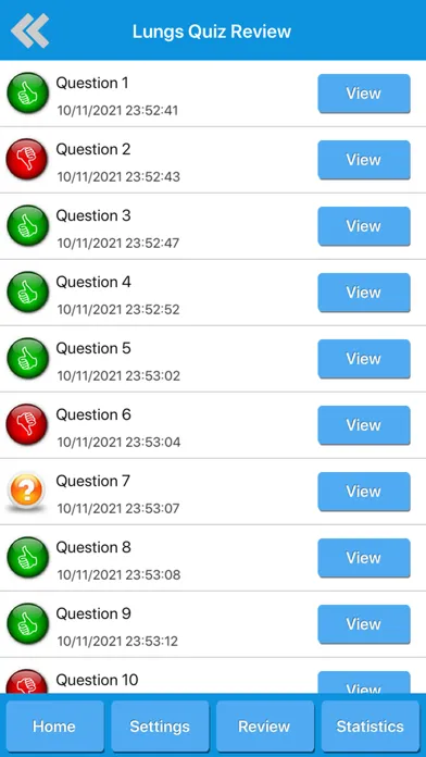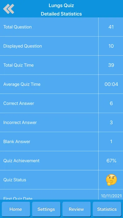 - Review your displayed quiz questions history.