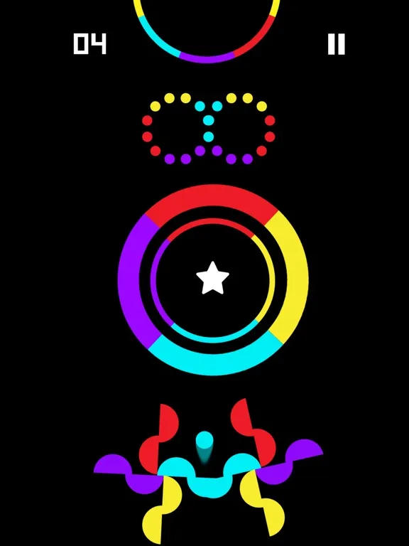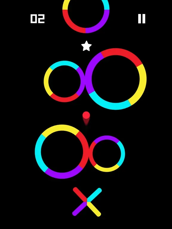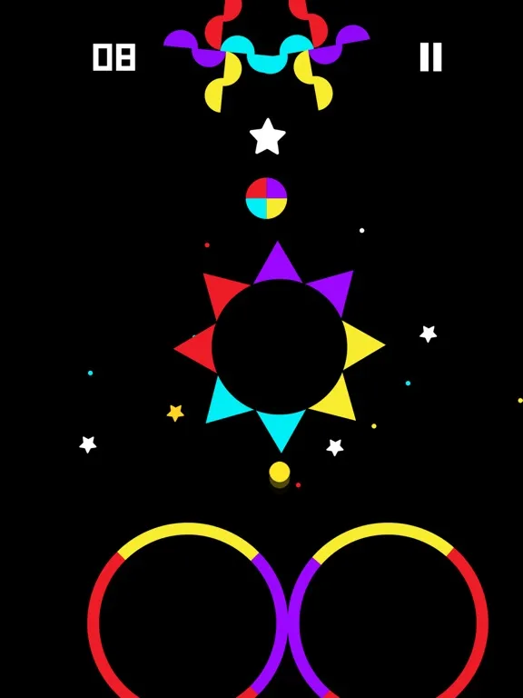 Tap on the screen, that will make the ball bounce higher and higher. The ball has one color, and can pass through obstacle with the same color, or sneak in between obstacles with different colors.