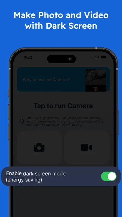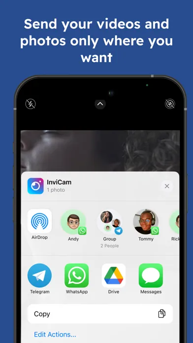 The InviCamera app allows you to not overload your camera roll with photos you do not need :) Shoot a photo or video, send it to your friends on socials or messengers, and here it is! InviCamera saves you from a necessity to clean up your camera roll or iCloud: your photos and videos appear only where you send them to, they are not saved to the iPhone or iCloud. InviCamera works very simply: you open it, and it runs the camera straight away, all that remains is to take a photo or video and send it! You are able to set what will be launched by default: Photo or Video camera, and switch them at any moment :)