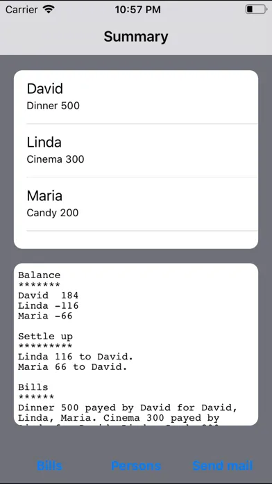 Settle up your depts when being in a group of different payers. Register the bills and who they are valid for. The App calculates balances and how to settle up. Email of balance report and settlement is available inside the app.