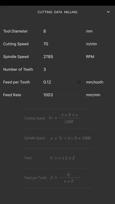 iMachinist is a simple to use CNC calculator app that calculates for you the cuttings speed, RPM, feed rate and more for your milling, drilling and turning operations.