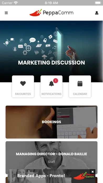PeppaComm's communication platform including Events, News, Notifications, and important Resources.