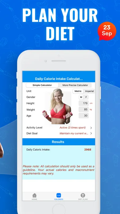 The Fitness Calculator is a simple tool that allows you to easily achieve your goals (weight gain, weight loss or maintain your current weight).