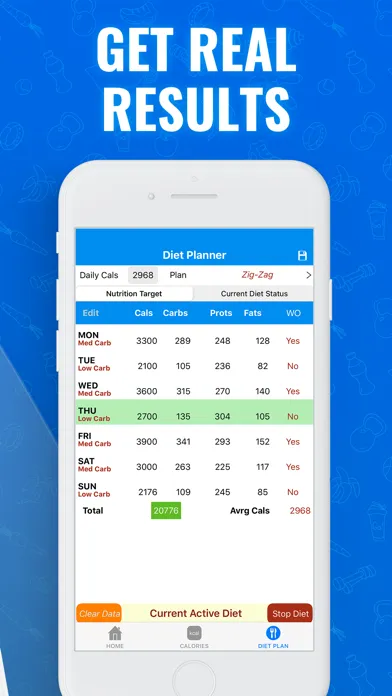 - Diet Planner: With the diet planner you can precisely plan your calories and macros for the different days of the week that can be different for workout and no workout days. With this tool you can cycle your calories and carbohydrates in order to break plateaus, accelerate fat loss, maintain lean body mass and prevent your metabolism from slowing down. Here you can create your own cycles or you can use the predefined system cycles.