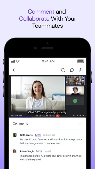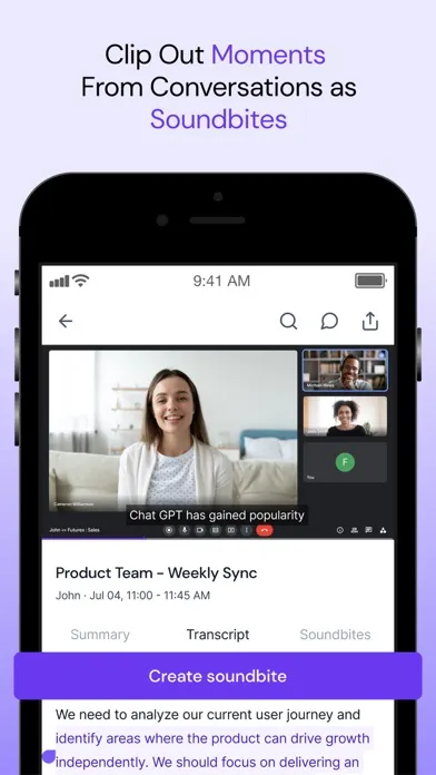 - Create soundbites and easily share the most memorable moments from meetings.