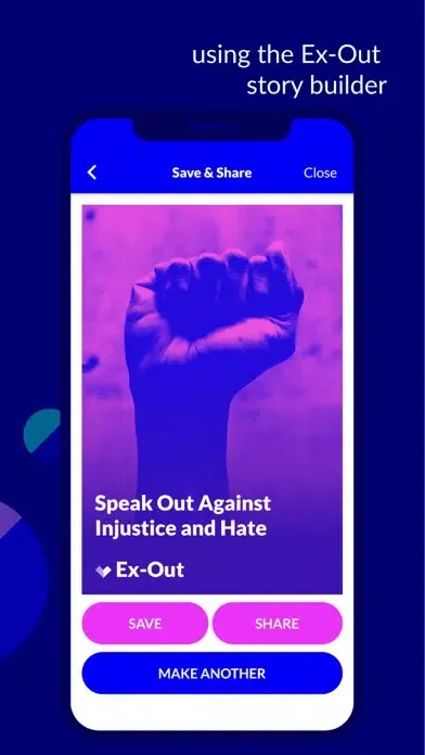 The Ex-Out app is a digital handbook that helps those looking to make a difference, create shareable social media content, and educate others in combating hatred and violence online.
