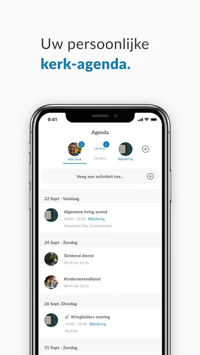 Dankzij onze unieke groepenstructuur helpen wij kerken beter te communiceren. Met de hele gemeenschap, maar ook onderling. U kunt zelf groepen toevoegen en mensen daarvoor uitnodigen. Een slimme timeline zorgt er voor dat iedere gebruiker persoonlijke en relevante informatie ziet.