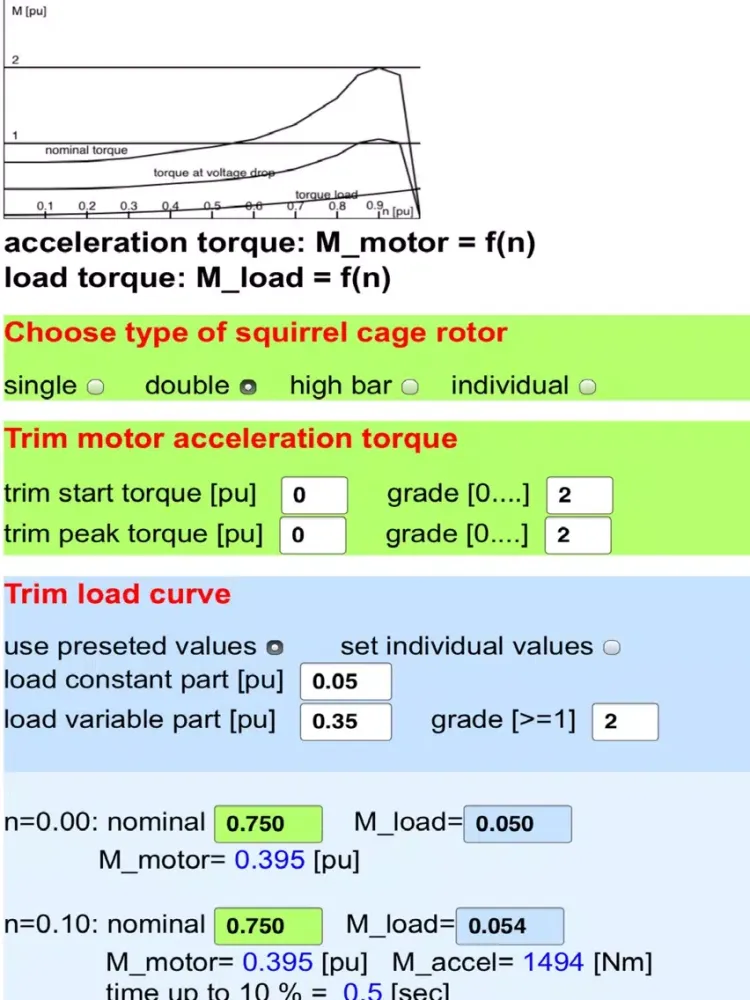 The torque characteristic of the load can be designed by 2 parameters (constant and variable part) or inserted individually.