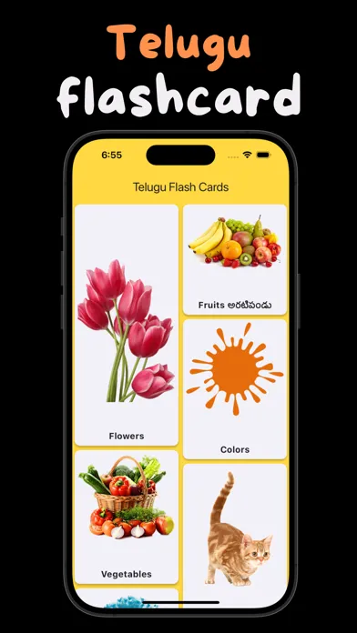 This app offers a delightful way for children to discover and memorize essential Telugu words through colorful flashcards.