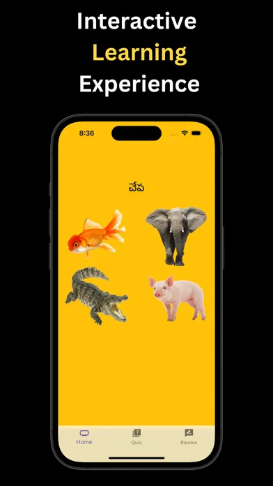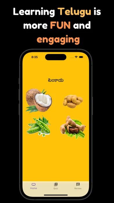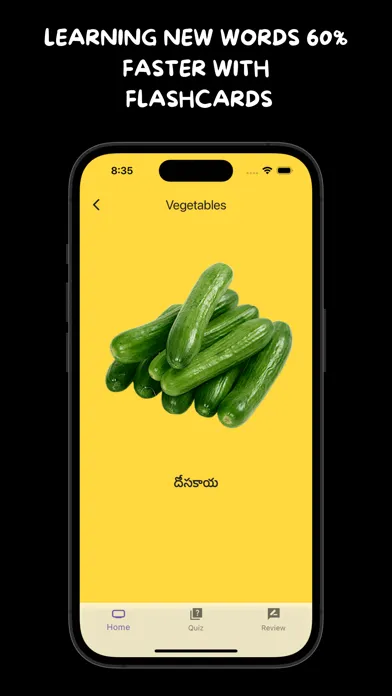 Interactive flashcards: Tap and swipe to reveal Telugu words and pronunciations