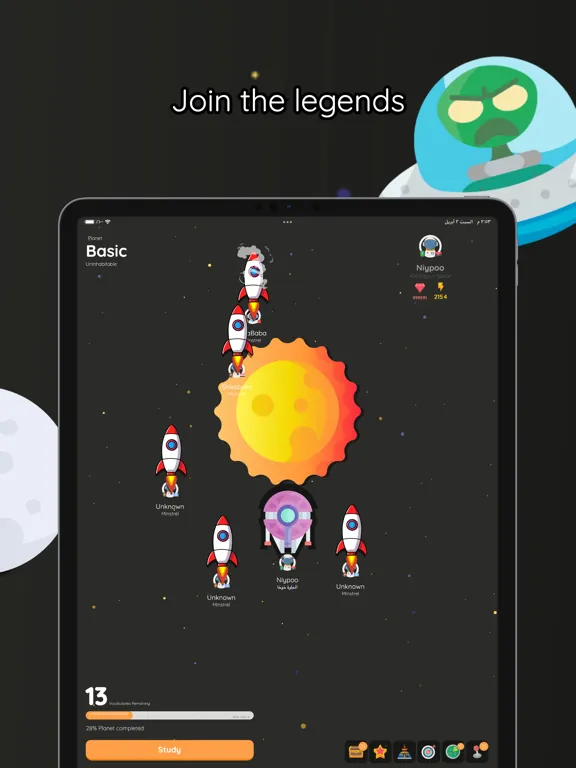 Join the legends to learn a new language or improve one you're learning now and help them save humanity, fight alien invasion and find a path to a new habitable planet together.