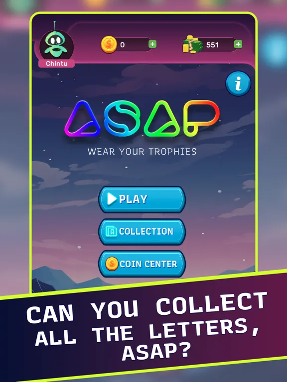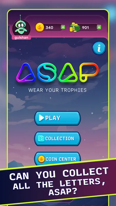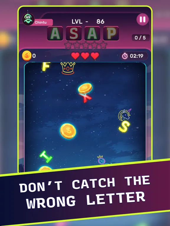 Letter Collection Madness: Dive into the heart of the action as single letters rain down from above! Your mission? Collect the ASAP Letters in different colors as fast as you can!