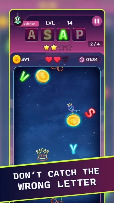 Coins and Obstacles Galore: As you brave the letter storm, be on the lookout for coins to boost your wealth and obstacles that challenge your speed. Collecting coins increases your wealth, while snagging obstacles reduces precious time. Choose wisely!
