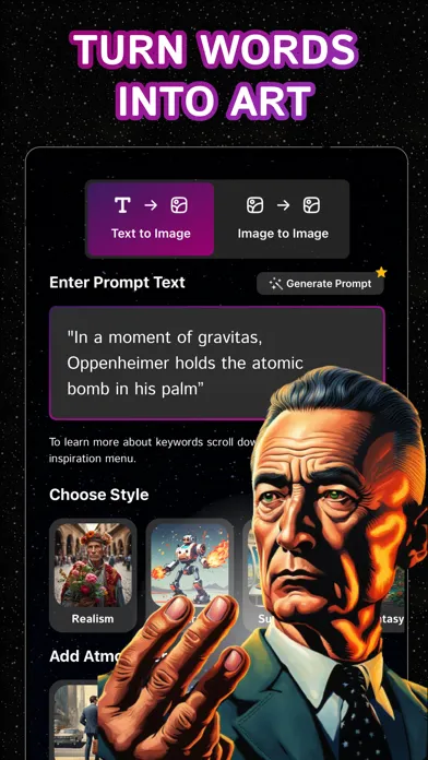 Whether you prefer classic elegance, futuristic vibes, or vibrant pop art, ART·AI offers many options to enhance and customize your creations.