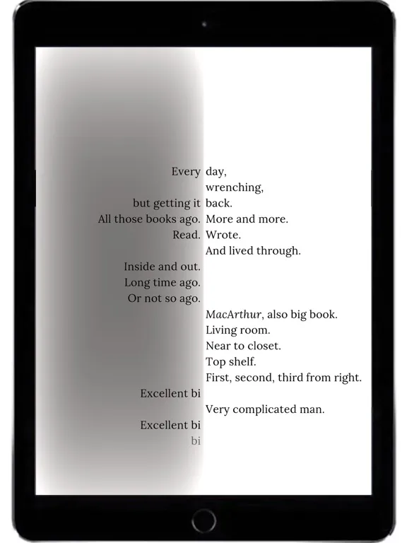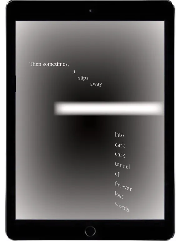 RIVETED IN THE WORD is an electronic book inspired by the true story of a writer’s hard-fought battle to regain language after a devastating stroke. Written and designed by author/designer/visual literature pioneer Warren Lehrer, this multimedia book app places the reader inside the mind of a retired history professor as she recalls her journey with Broca Aphasia. The custom interface toggles between columns of text that readers navigate at their own pace, and animated sections that evoke gaps between perceptions (thoughts, memories, desires) and the words needed to communicate. This deeply moving story about overcoming seemingly insurmountable obstacles is told in a dynamic new way, with kinetic typography choreographed by Lehrer, and an original soundtrack by composer/multi-instrumentalist Andrew Griffin. Programmed by electronic literature developer Artemio Morales at AltSalt, this e-edition of RIVETED IN THE WORD is made for iPad, iPhone, and Mac computers (system 12 and above).
