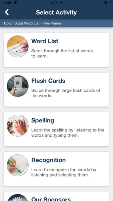Featuring over 1200 Words to learn from with a clutter-free, simplistic design to keep the students focus on the learning of the words.