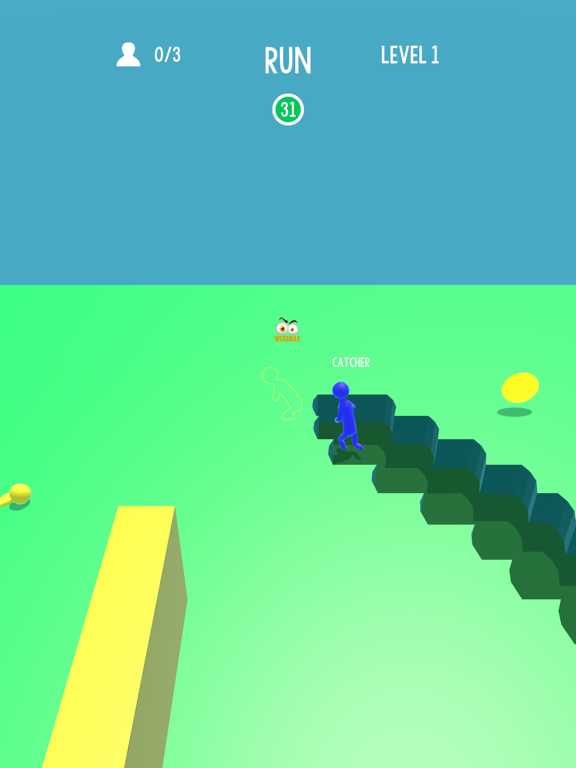 Be ready for catch or run game. You can choose one of two roles at the beginning of each level. One of them is catcher, other one is runner. If you are a runner, you will avoid from the catcher until the times run out. Also, you can hide when you stop but you can be seen when the catcher come closer. If you choose to be a catcher, you need the catch other players until the times run out.