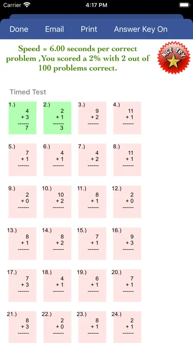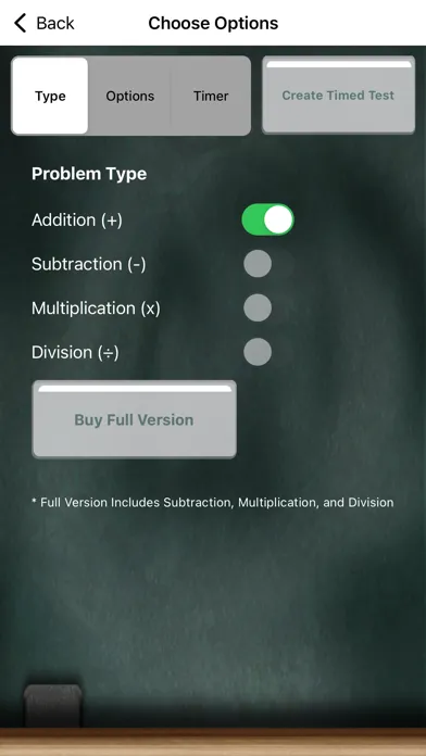 Timed Test is a full-featured addition math facts timed test simulator. Create completely customizable timed tests. We offer subtraction, multiplication, and division in the Timed Test for Math Facts version of the app.