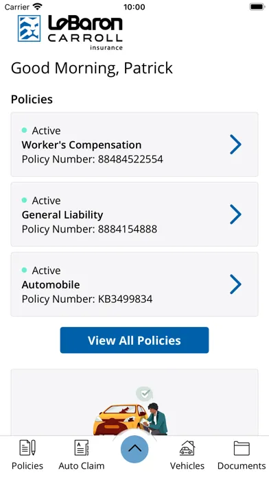 LeBaron & Carroll’s Mobile Dashboard App gives you finger-tip-access to your policy information and other insurance documents - 24 hours a day, 365 days a year! It also allows you to generate liability cards on the spot without ripping apart the glove compartment when you're required to show proof of insurance.