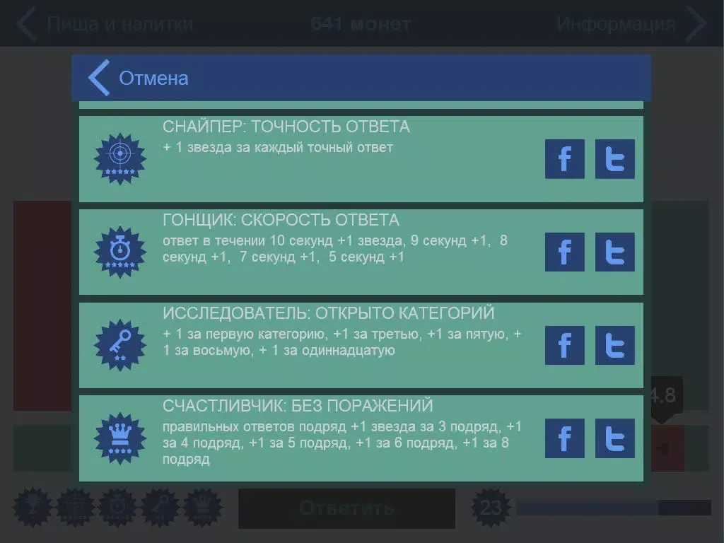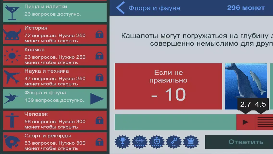 4. Система вовлечения в игровой процесс и последовательной разблокировки категорий в обмен на заработанные монеты.