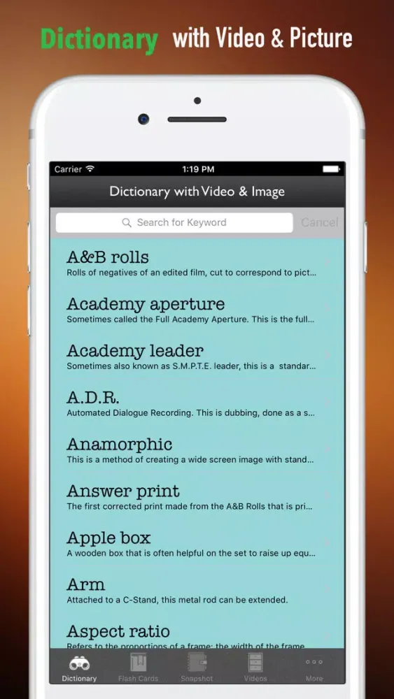 * We have collected All of the most common Filmmaking Glossary and terminology. Wherever you feel puzzled by the names, the App is your powerful dictionary tool.