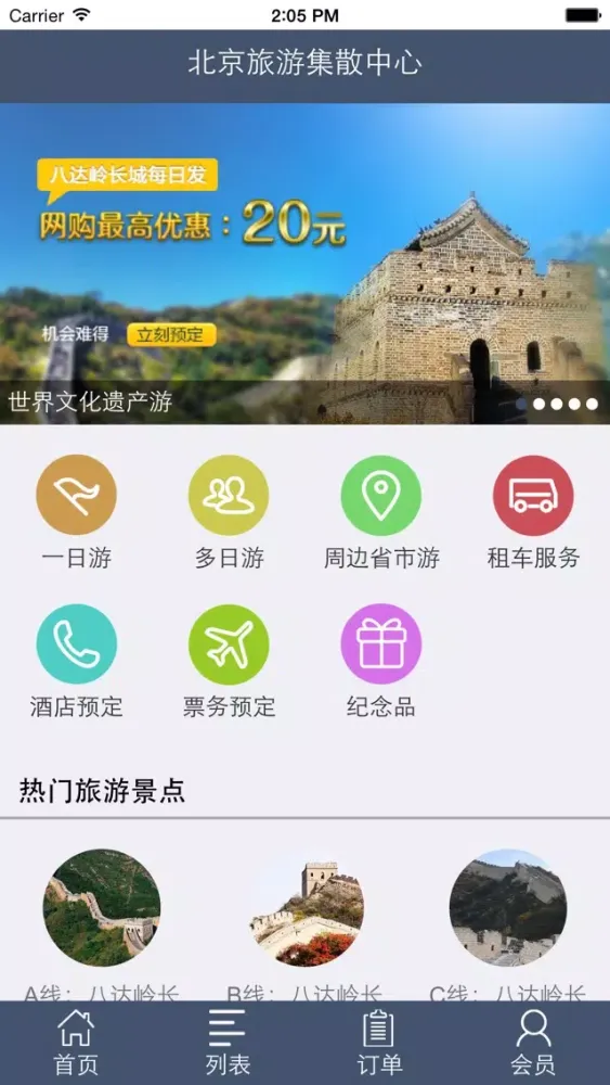 北京旅游集散中心为散客提供各条北京旅游线路.为旅游者提供“吃、住、行、游、购、娱”全方位旅游服务,快速预订无需繁琐注册流程,快速预订,下单后客服将为您提供7x24小时的贴心服务。