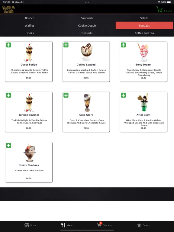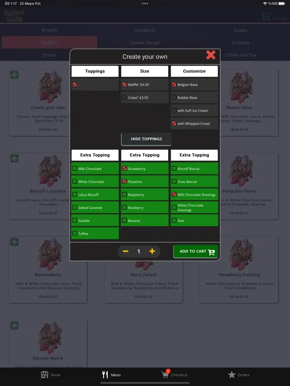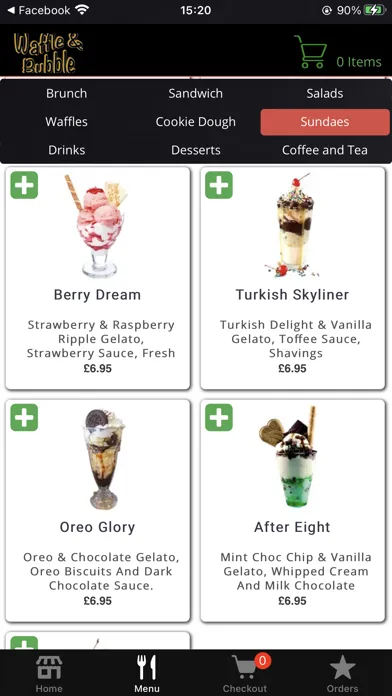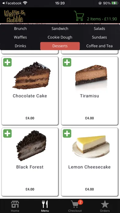Waffle,Crepes,Brunch Foods,Cakes,Cookie Dough,Bubble Tea,Sauced Ice Creams