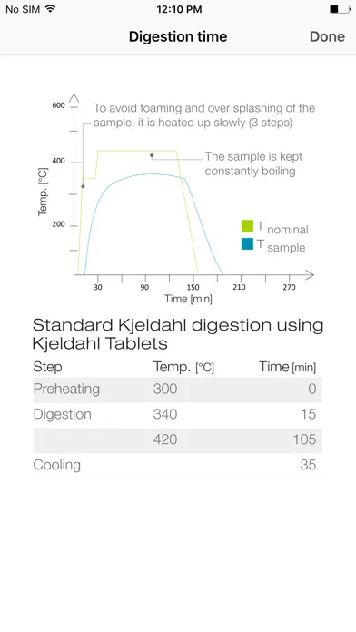Calculate optimized digestion and distillation parameters for the nitrogen determination according to Kjeldahl. The calculator outputs the following digestion parameters: