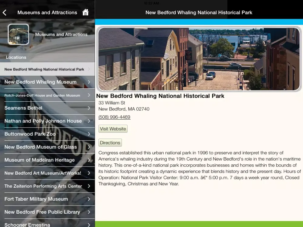 Looking for a great seafood restaurant? Craving arts and culture? Searching for the nearest hotel or fun things to do in New Bedford? This app will help you plan your New Bedford adventure whether you are coming from thousands of miles away or just a few. Use the Map or Augmented Reality feature to locate the points of attraction, restaurants and shops closest to you. Whether you like whaling history, old forts, sailing, visual and performing arts, walking tours, picturesque views, ethnic food, or just simply relaxing at the beach, you will find useful information to fit your interests. This free and easy to use app will be your best travel companion in New Bedford!