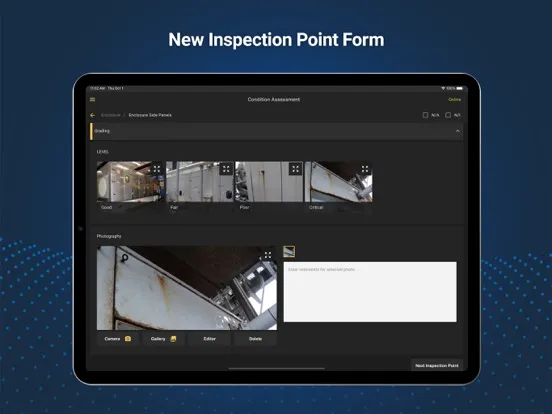 InSight Assess is a suite of tablet applications designed to manage photos, enter meta data, comments, and generate automated reports. With online and offline functionality, encrypted database storage and inspection lists managed by subject matter experts, we ensure the highest quality of assessments reporting.