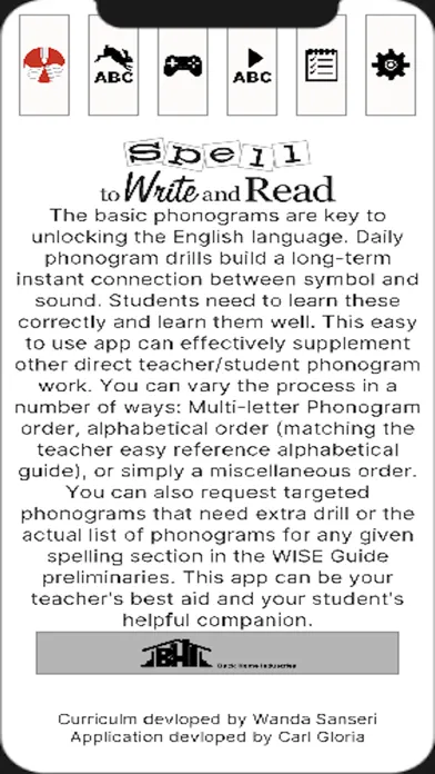 This is the official SWR curriculum app for "Spell to Write and Read" program created by Wanda Sanseri.