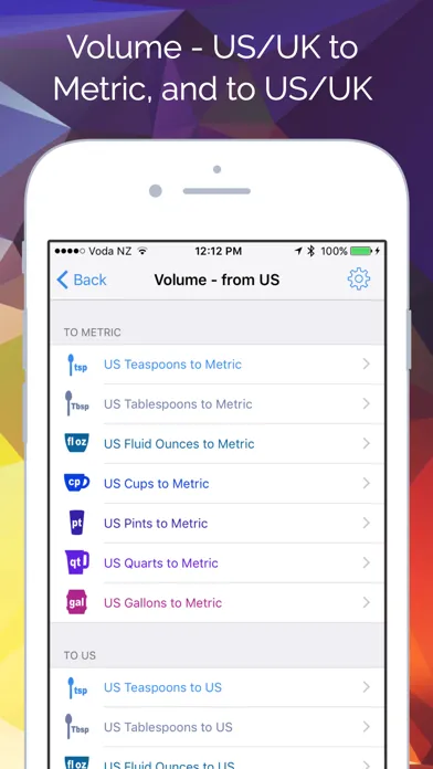 • Volume - US/UK to Metric, and to other US/UK