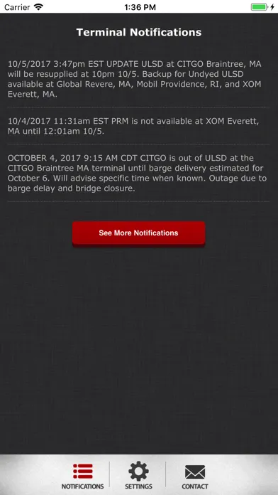 CITGO Terminal Notifications App allows registered users to receive real-time terminal notifications regarding supply, office closures, outages, RVP conversions and more.