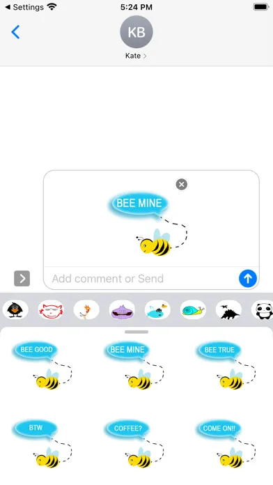 Express yourself in new ways with KAT Stickers you can put anywhere in your chat. Scale, rotate, and layer stickers; even place them on photos you send and receive!